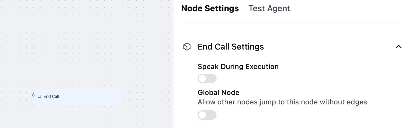 Goodbye, have a nice dayto say while the function is being executed. You can choose betweenPromptandStatic Sentence. - Global Node: read more at Global Node