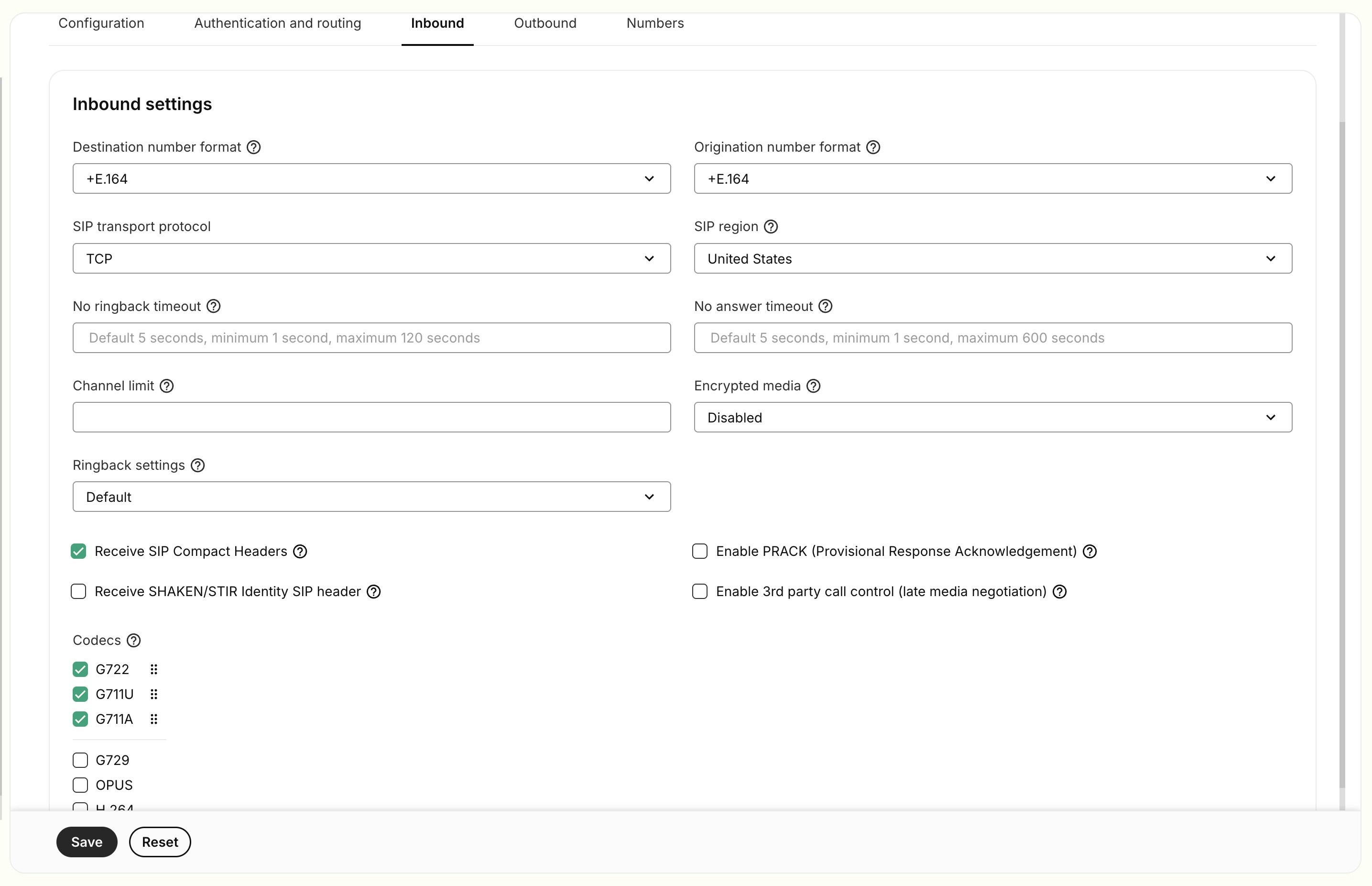 Here you will supply Telnyx’s FQDN as the termination SIP URI. You can find your FQDN based on